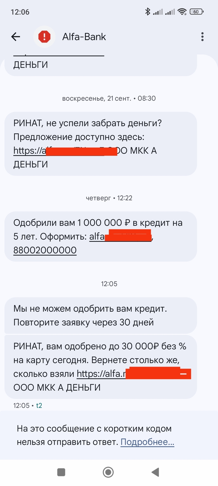 Альфа банк в четверг прислал сообщение, мол одобрили вам кредит в 1 миллион рублей на 5 лет. Сегодня, в воскресенье, это предложение увидел в приложении, и попробовал заполнить заявку, хотел узнать по...