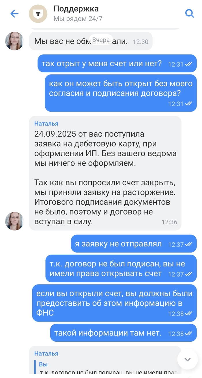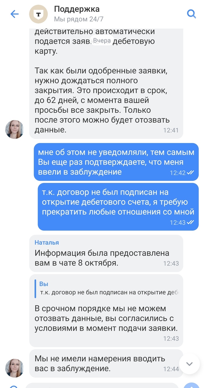 На данный момент по поводу закрытия неоткрытой карты банк отморозился. Мной подана жалоба в ЦБ РФ на отказ Т-Банка расторгнуть со мной договор.