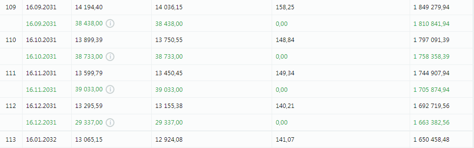 В финальном варианте прогоним ипотеку 0,1% через досрочное погашение, чтобы уменьшить платеж (используя разницу), как я писал выше.
