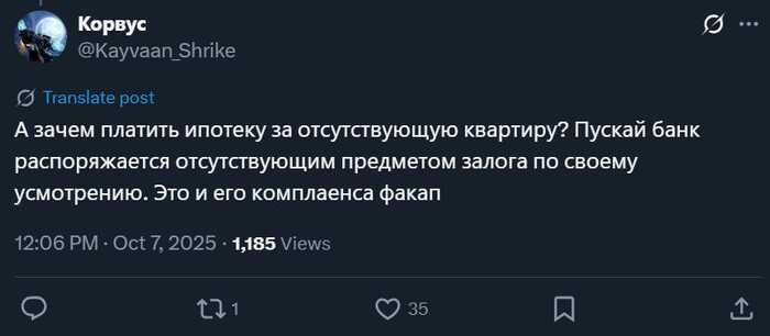 Короче, выходит, что да – ситуация «остался без квартиры, без денег, и с ипотекой» действительно вполне возможна на практике. Сейчас работаем с юристом над большим лонгридом с разбором этих рисков – подписывайтесь на мой ТГ-канал RationalAnswer, чтобы не пропустить (здесь на площадке материал тоже появится, конечно).