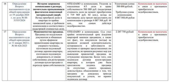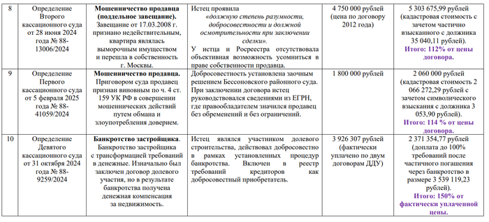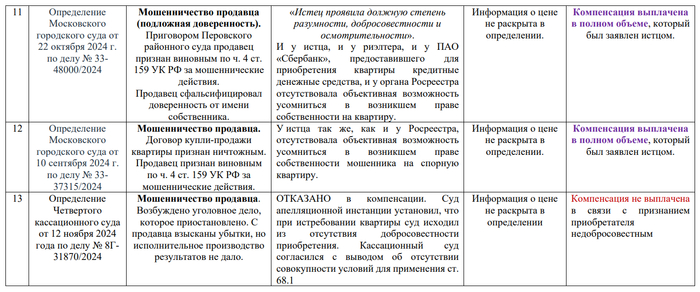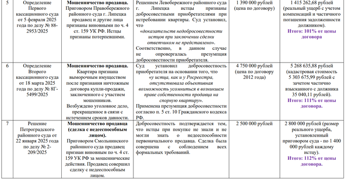 ⬇️ (https://cloud.mail.ru/public/jrf3/8kYwRANi4) В таблице (https://cloud.mail.ru/public/jrf3/8kYwRANi4) подробно рассмотрены судебные дела, о которых идёт речь в Статье.