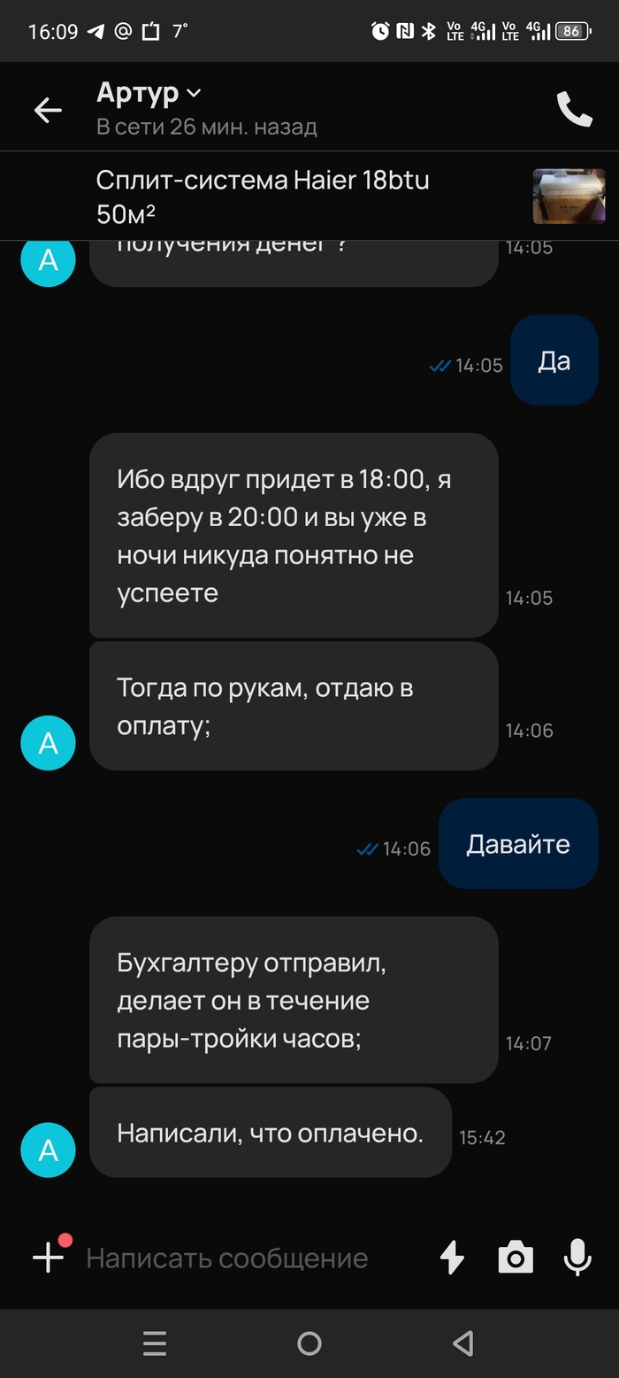 Суть такая, выложил я сплит-систему на продажу и пишет мне покупатель, смогу ли я отправить через авито-доставку. Я согласился, но потом начались "звоночки"..