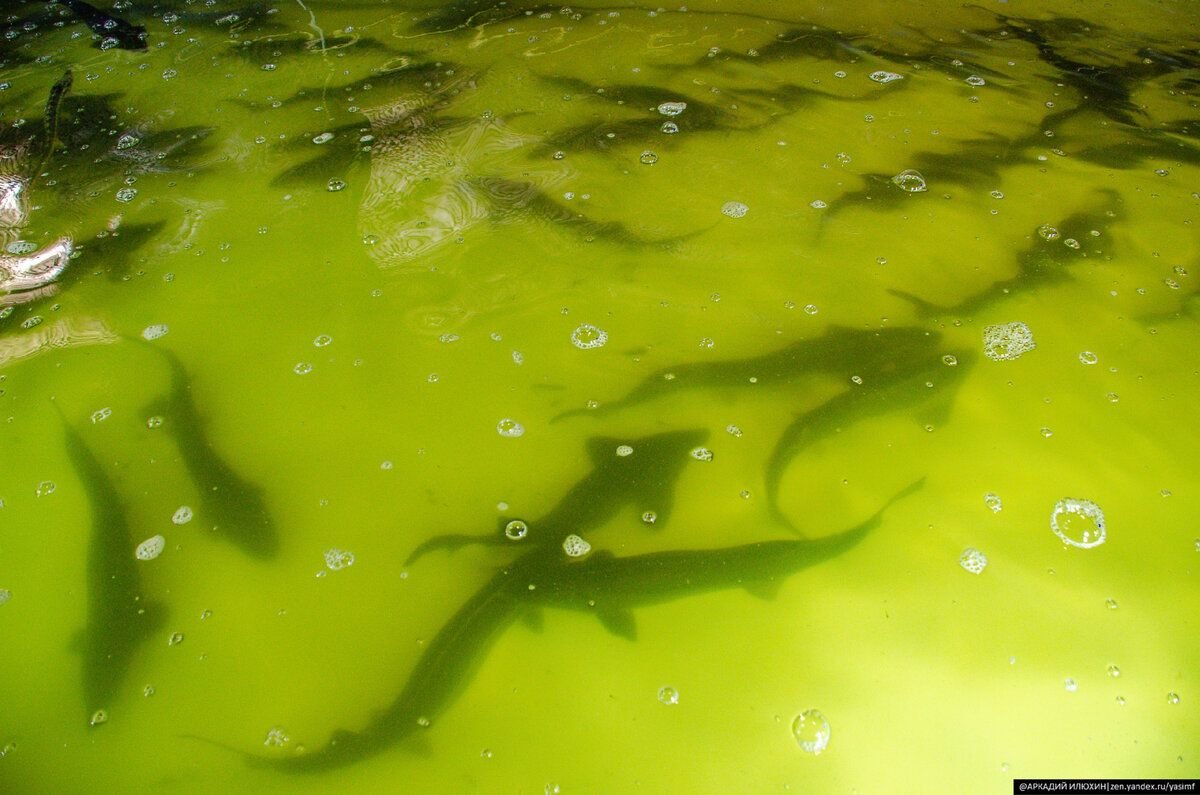 Чистая вода, насыщенная кислородом, – залог жизни осетровых рыб. В большом помещении с бассейнами, где растут мальки и живут взрослые особи, также есть несколько контейнеров с пластиковыми гранулами. Это биофильтр, бактерии, которые очищают воду перед подачей в рыбные бассейны.