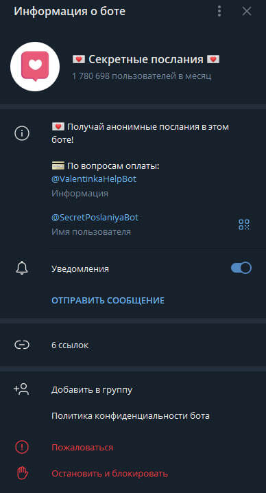 Источник статьи: Развод для одиноких сердец: как бот @SecretPoslaniyaBot выманивает деньги.
