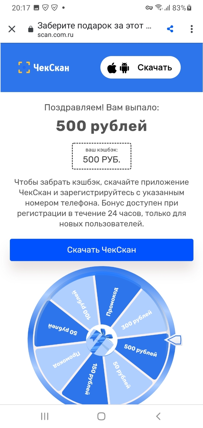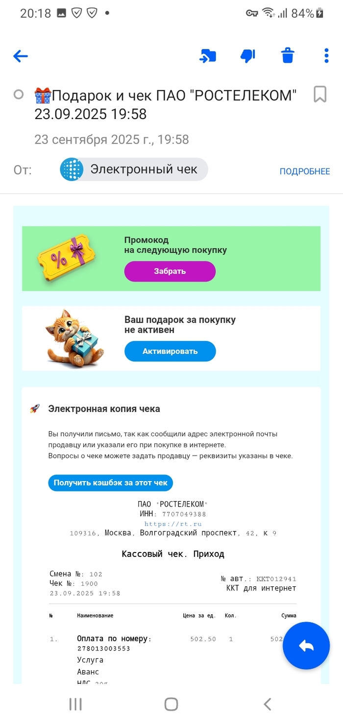 При нажатии в письме от РТ "получить кэшбэк..." , независимо, что вы введете, выскакивает